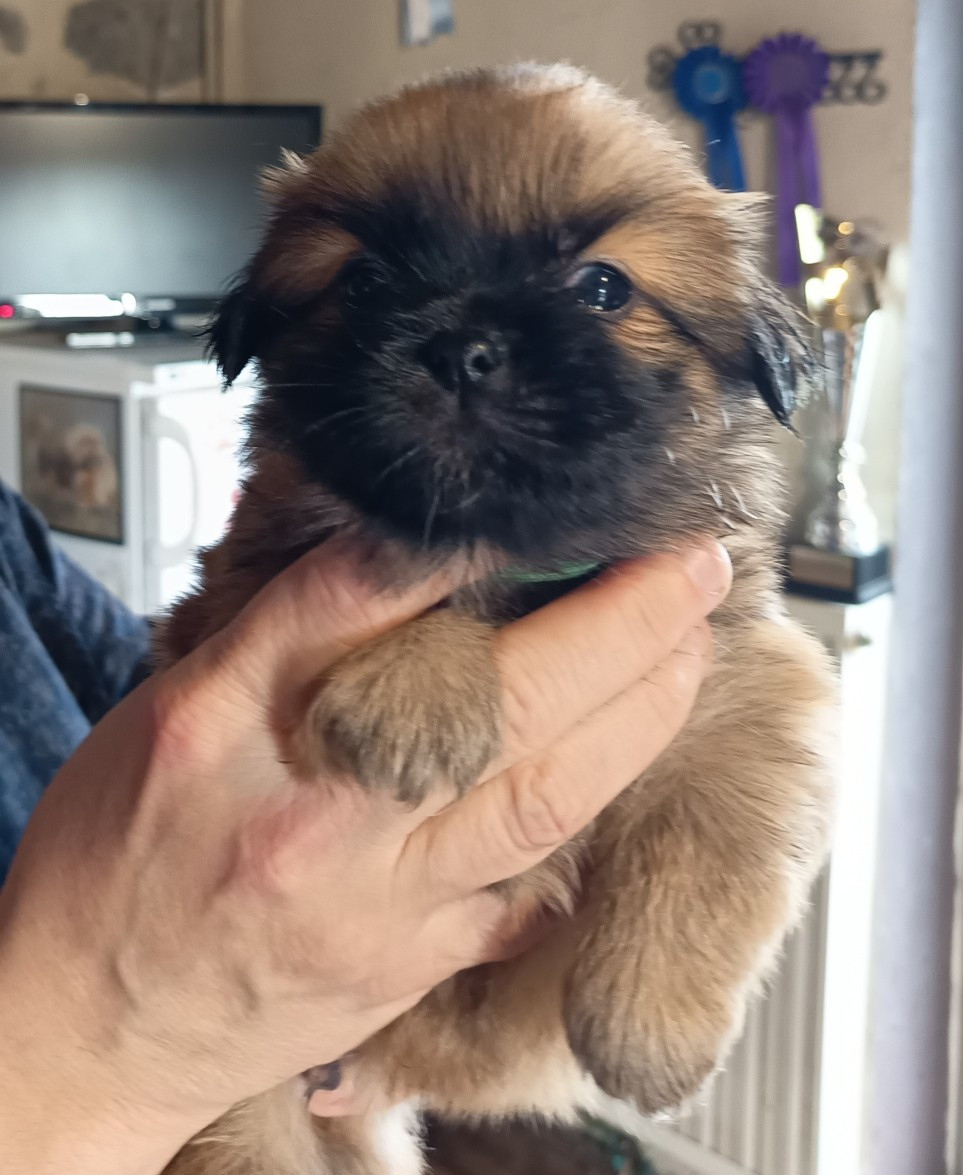 Une très jolie portée trés homogène, 2 femelles et 3 mâles. Les parents sont deux Epageuls Tibétains très gentils.